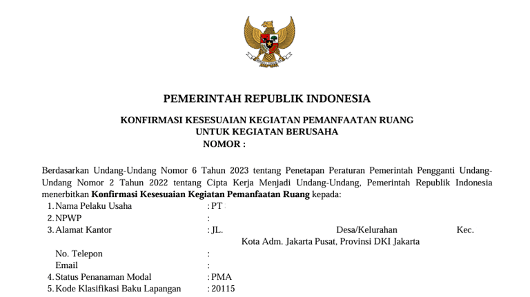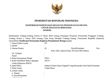 Persetujuan Kesesuaian Kegiatan Pemanfaatan Ruang (PKKPR) adalah dokumen yang memastikan rencana usaha atau pembangunan sesuai dengan Rencana Tata Ruang (RTR). Sebagai pengganti Izin Lokasi, PKKPR menjadi dasar penting perizinan berusaha dan mencegah konflik tata ruang. Terdiri dari PKKPR Berusaha untuk kegiatan komersial dan Non-Berusaha untuk kegiatan sosial, dokumen ini dapat diajukan melalui sistem OSS, dengan kemudahan bagi Usaha Mikro dan Kecil (UMK) melalui pernyataan mandiri.